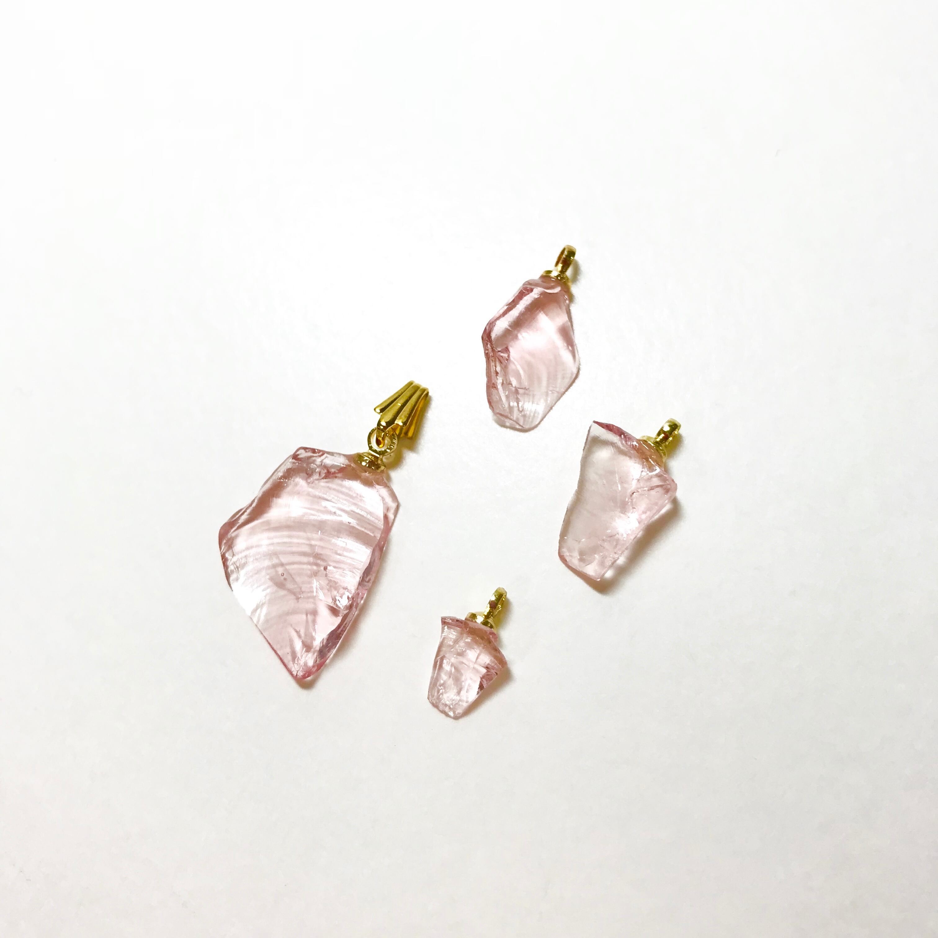 アンダラクリスタルの原石の希少カラーデザートローズを割って、チャームに致しました。