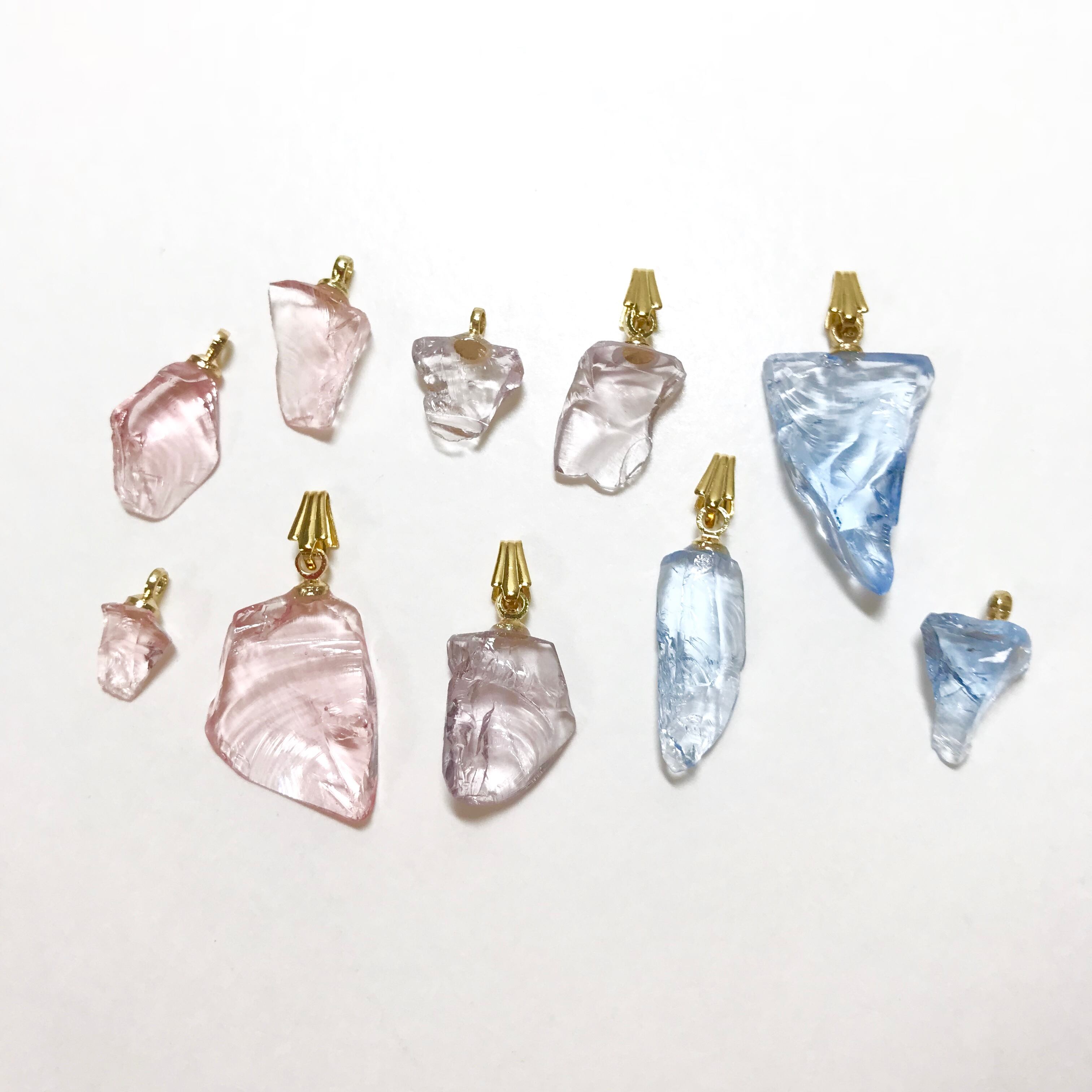 アンダラクリスタルの原石の希少カラーデザートローズを割って、チャームに致しました。