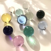 こちらはロシレムさんが繋いでくれて出会ったガラス職人さんが心を込めて、丸くスフィアにしてくれた石です。一度溶かして、丸く加工してくれました。