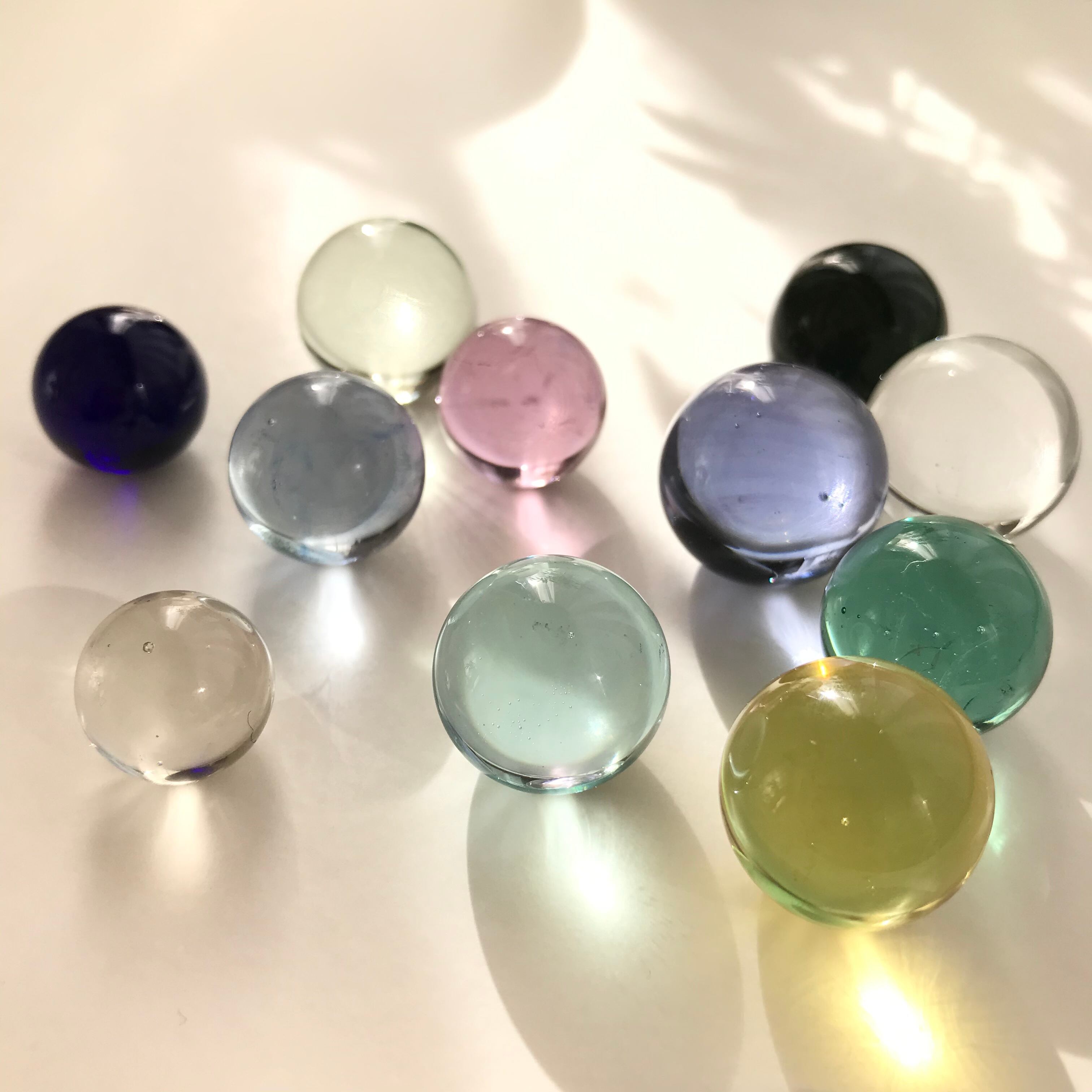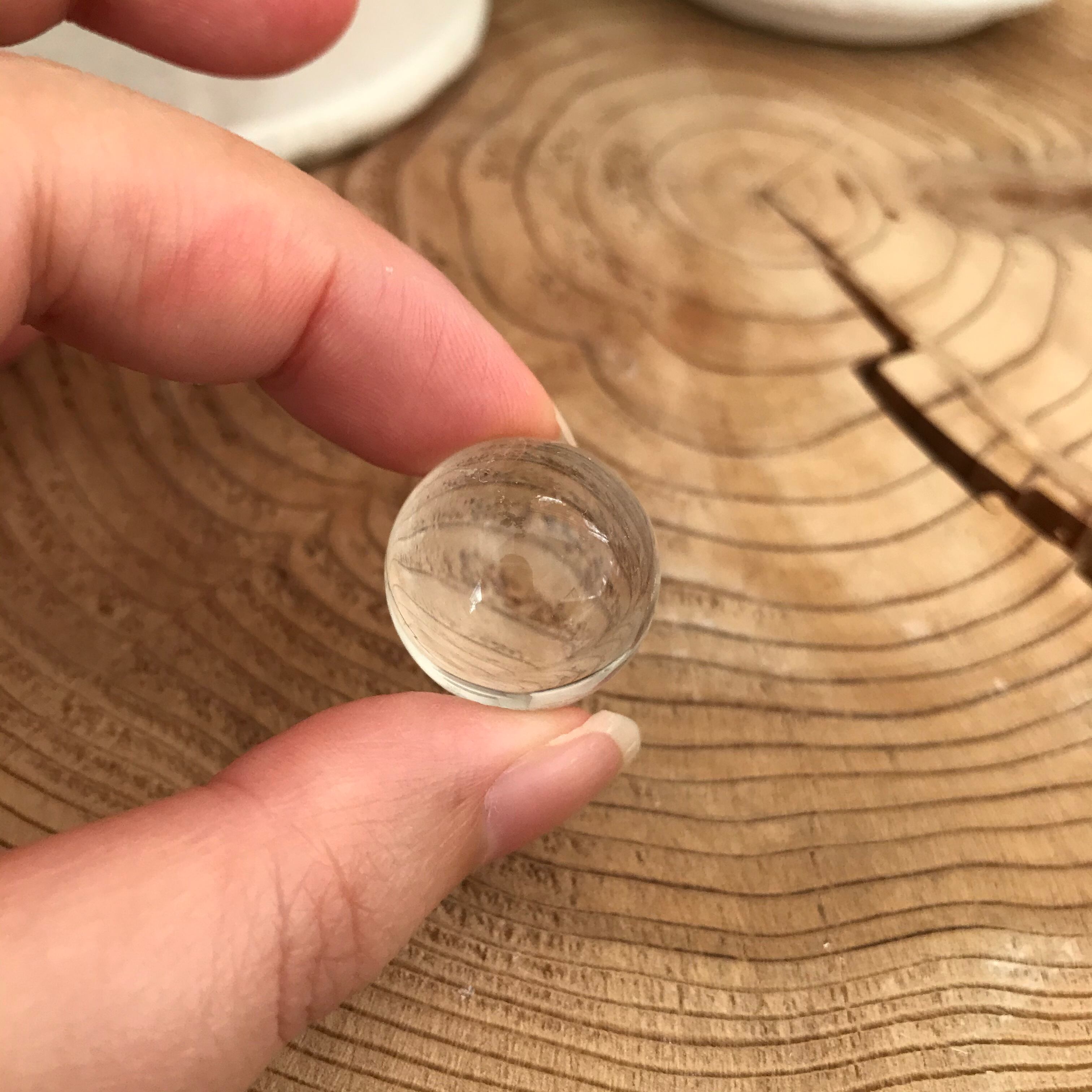 こちらはロシレムさんが繋いでくれて出会ったガラス職人さんが心を込めて、丸くスフィアにしてくれた石です。一度溶かして、丸く加工してくれました。