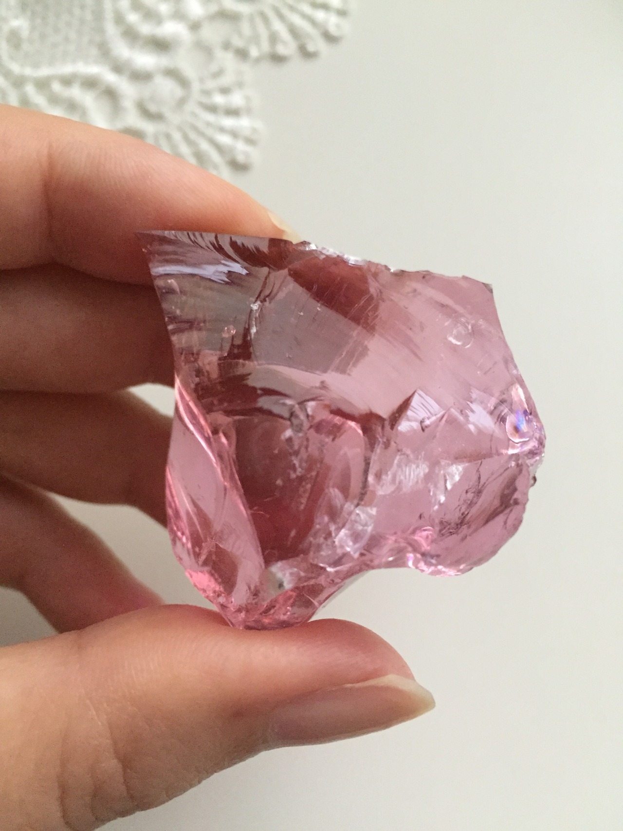 原石もハート型だったのですが、割ってみてもハート型になった不思議な石です。色の名前も「天使のハート」という名前なのですが、ザ天使のハートとも呼べる不思議な石。天使の羽で包まれた様な柔らく温かな安心感に包まれたような感覚になる石です。恋愛で傷ついた心を優しく癒してくれます。過去の恋人に言われた言葉の真意を気付かせ、あなたを傷つけるためではなかったよと優しく語りかけてくれます。そして、不必要に自己卑下する癖を直し、あなたは悪くないよと気付かせてくれます。